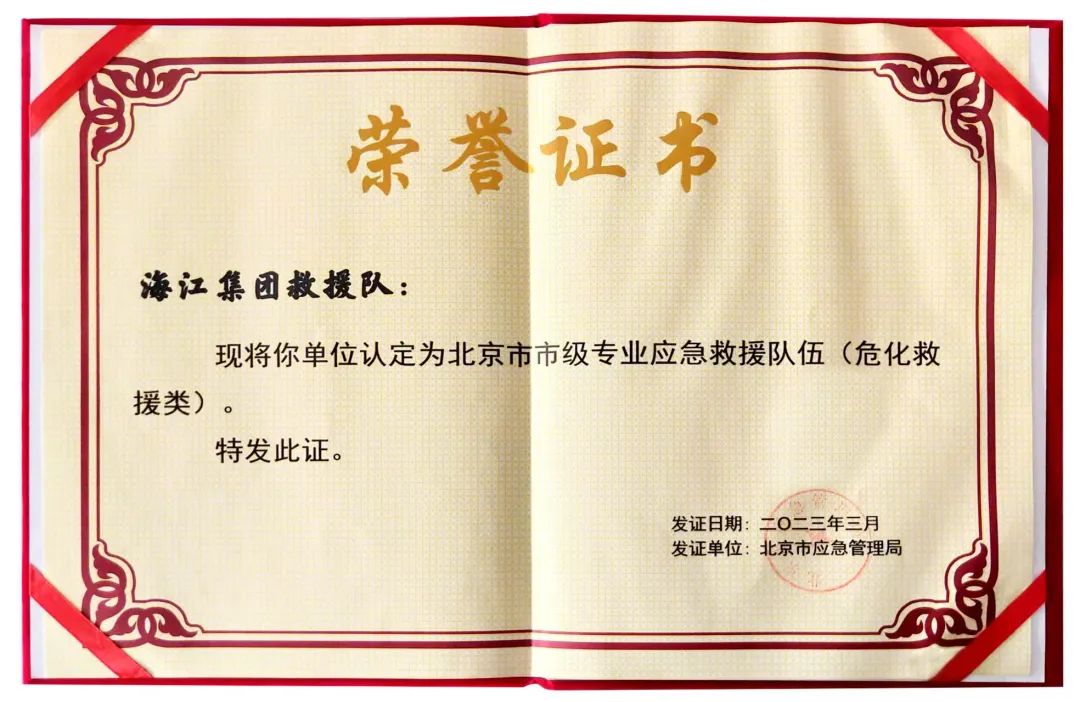 ? ? This time, the rescue team of Haijiang Group obtained the authoritative certification from Beijing Emergency Management Bureau, which marks a new journey for the Group's emergency rescue business, and a new emergency rescue team set out again in full gear.?They will continue to conscientiously implement the decision and deployment of the Party Central Committee and the State Council on emergency management, disaster prevention, mitigation and relief, and product safety to maintain the safety of people's lives and property and social stability.