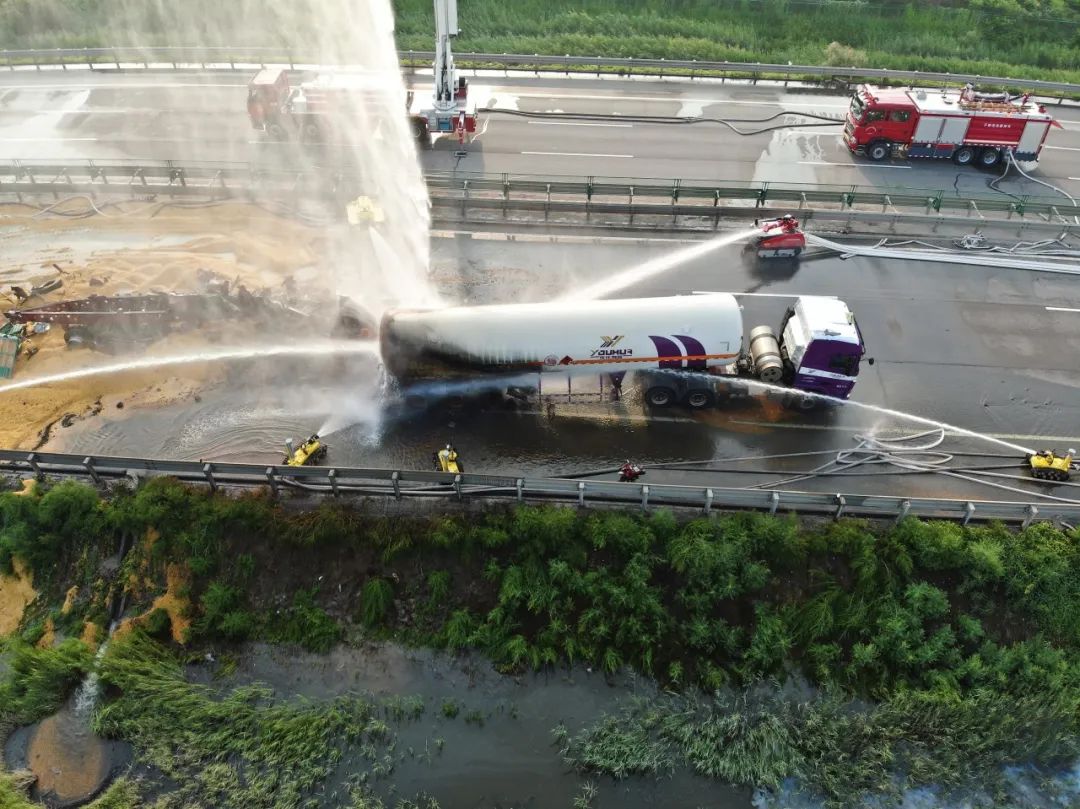 ? ? Haijiang rescue team cooperated with the Emergency Rescue Tianjin Petrochemical Team and Tianjin Fire and Rescue General Brigade to carry out the rescue method of cooling the operation box at the rear of the burning tanker and the side tanks, and assisted the traffic control department in the implementation of vehicle diversion and personnel evacuation on the accident road.