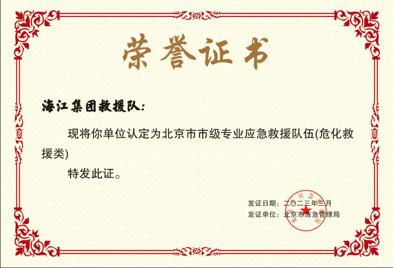 ? ? ? ?May 5th, authority certification! Beijing Emergency Management Bureau awarded Haijiang Group Rescue team as "Beijing Municipal professional emergency Rescue Team", which is a great affirmation of Haijiang Group's emergency rescue force.
