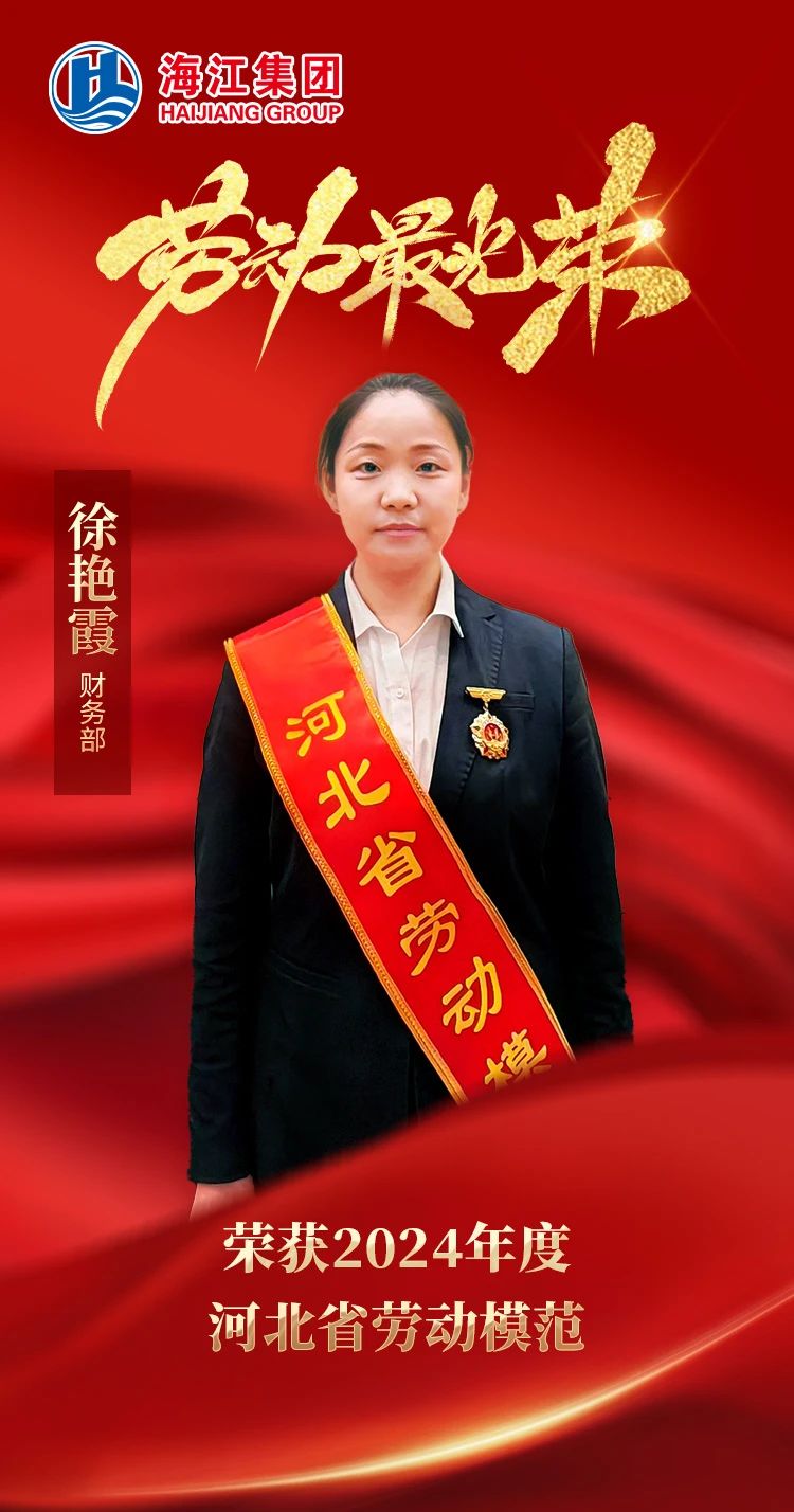 ? ? ? ? ? Haijiang Group warmly congratulates Comrade Xu Yanxia on winning the honorary title of "Hebei Provincial Model Worker". The Group will further promote the spirit of model workers, set an example and encourage all employees to contribute more to the sustainable and healthy development of the group.