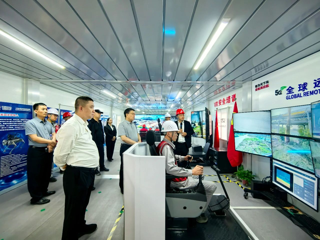 ? ? ? Then Director Dong Yongsheng and his delegation visited the 5G global remote control command Center of Hubei Zhijiang Project. At the scene, the technical staff demonstrated the platform operating system in detail, and through the comprehensive explanation of Gao Qiying, secretary of the Party branch of the Group, the leaders gave high recognition to Haijiang Group's original 5G global remote control technology.