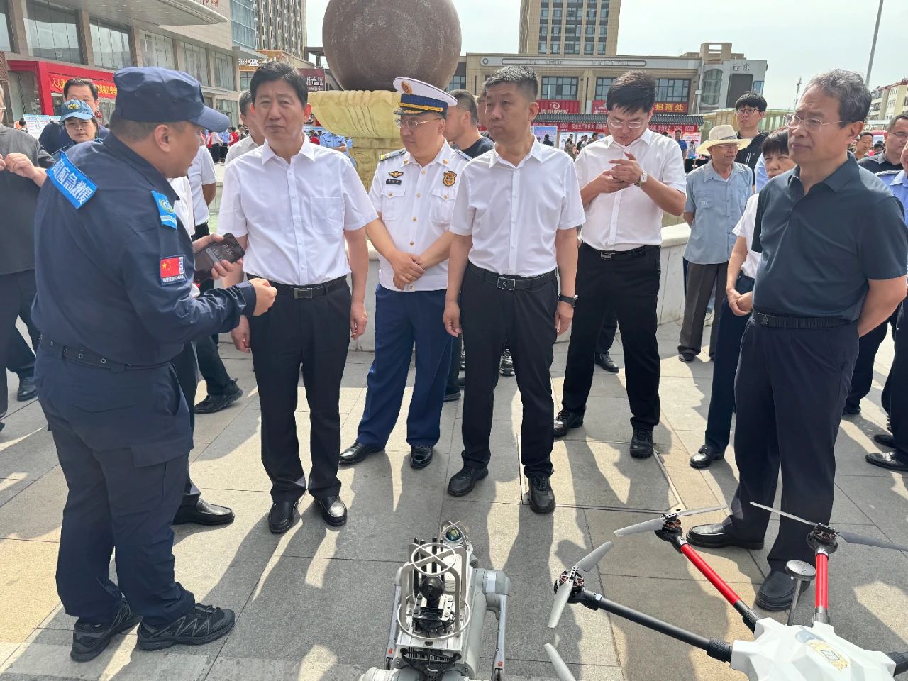 The Deputy Mayor of Cangzhou City and Director of Cangzhou Emergency Management Bureau visited the booth of Haijiang Group Rescue Team for Cangzhou Safety Promotion Day and highly praised Haijiang Group's intelligent emergency construction.