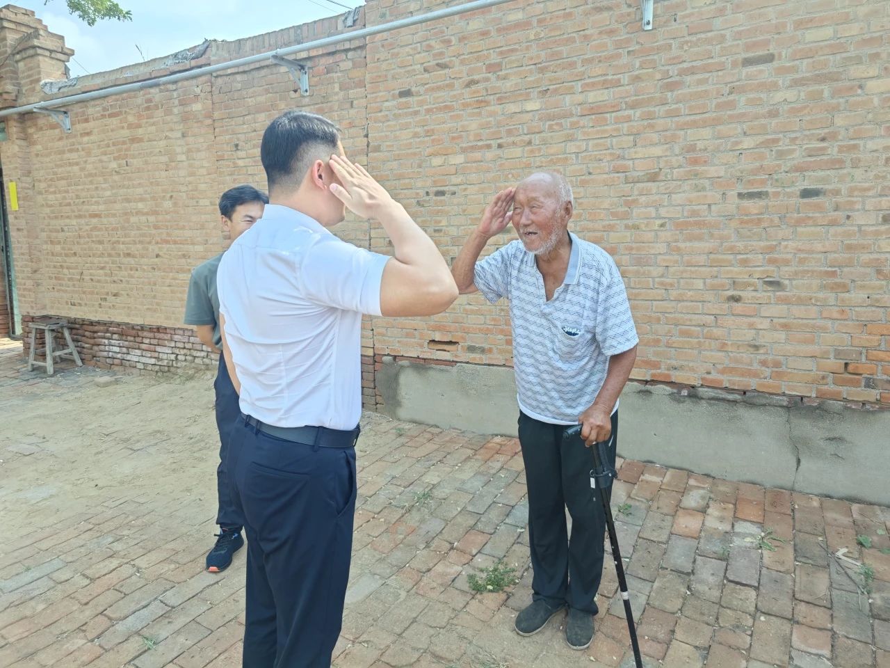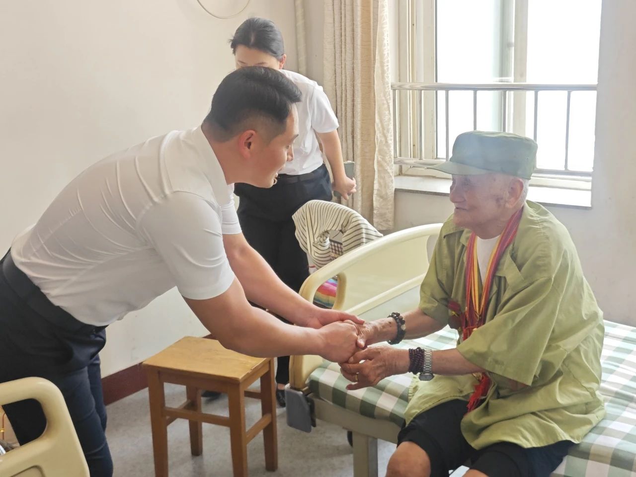 On August 1, 2025, on the occasion of the 98th anniversary of the founding of the Chinese People's Liberation Army, Chu Long, Vice Chairman and General Manager of Haijiang Group, led a team to visit and comfort veteran soldiers of the Anti-Japanese War and retired servicemen in Cangzhou urban area and its subordinate counties and districts, together with Feng Dan, Deputy Director of the Veterans Affairs Bureau, and Liu Baoguo, Section Chief. In front of the spiritual monument engraved by the years of blood and fire, the collective consensus of respecting heroes was transformed into tangible care, and the original mission of private enterprises to support the military and give preferential treatment to their families was practiced with practical actions. Paying Tribute to Veteran Soldiers: Inheriting the Red Gene through Military Support Practices Vice Chairman Chu Long visited and comforted five anti-Japanese war veterans and retired servicemen, namely Zhang Shue, Jiang Xuekong, Ju Yuhua, Ju Yuguo and Li Yuange. He asked in detail about the veterans' living needs, listened intently to the battle stories of those war-torn years, and presented consolation materials on behalf of the group.