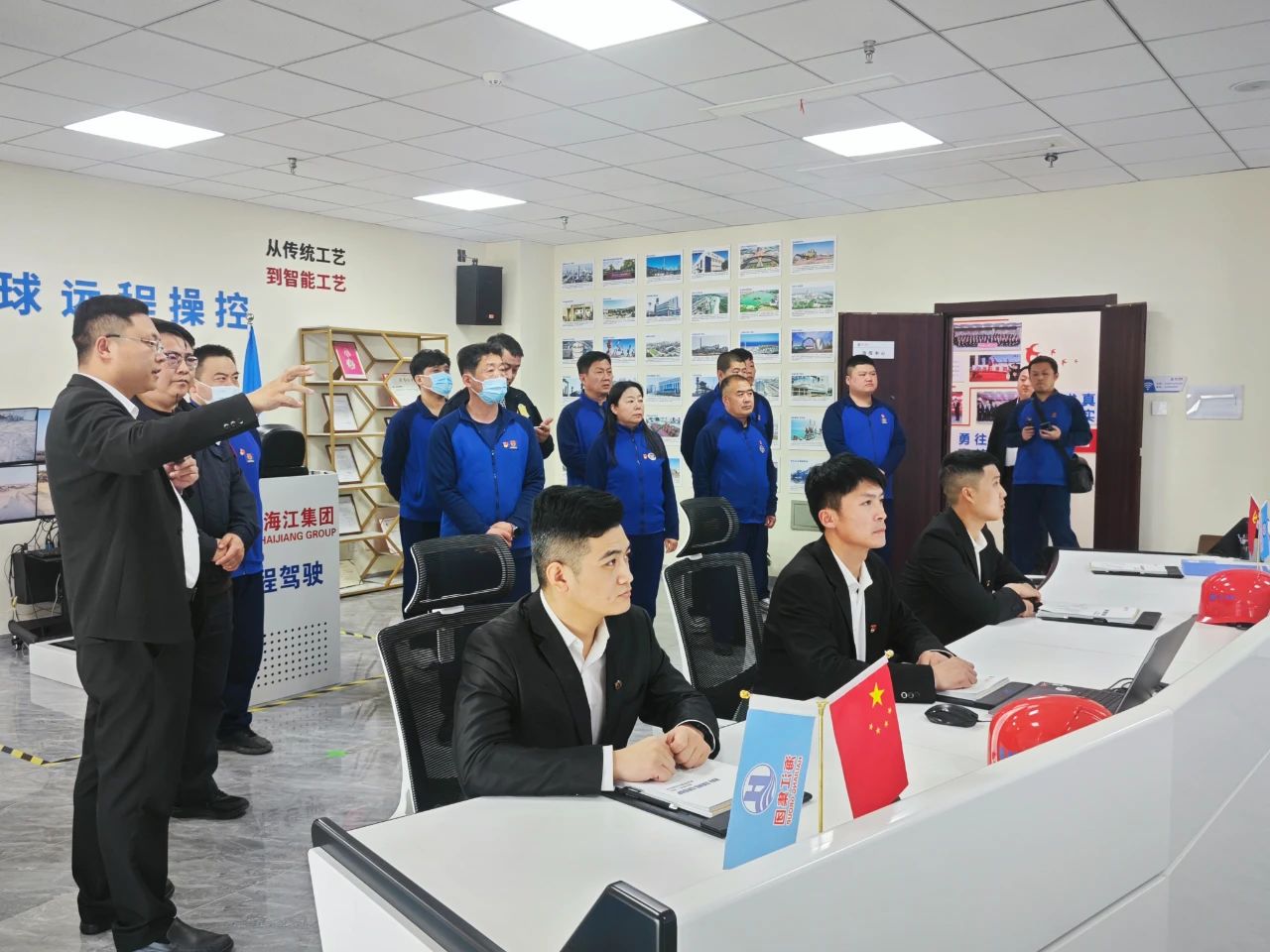? ? ? After the visit, the leaders of the two sides held in-depth talks in the intelligent training room of Haijiang Group. Gao Qi Ying, secretary of the Party branch of Haijiang Group, first introduced the development of Haijiang Group in recent years, and elaborated on the group's business structure, technical advantages and emergency rescue business development plan.