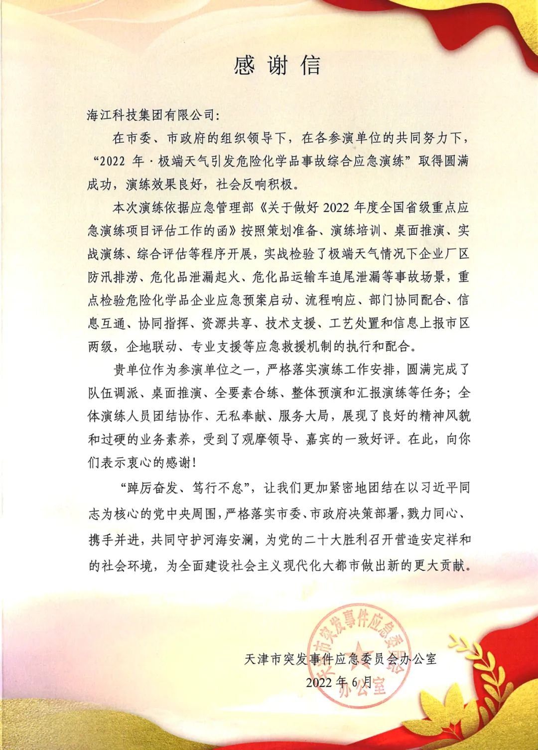 踔厲奮發,勇毅前行 | 一封來自天津市突發事件應急辦感謝信