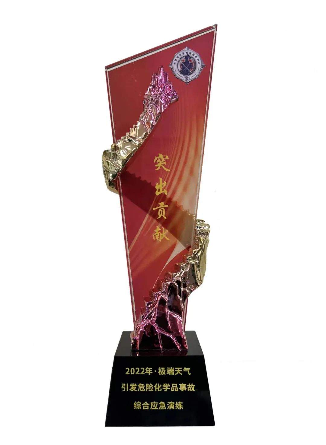 ? ? 近日,集團收到一封來自天津市突發事件應急委員會辦公室發來的感謝信及《2022年·極端天氣引發危險化學品事故綜合應急演練》突出貢獻榮譽獎杯。