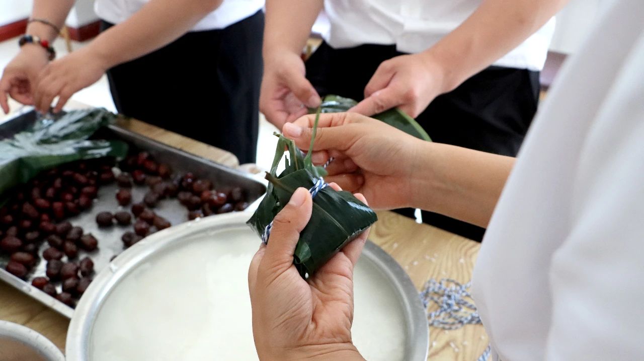 ? ? ? ? ? ?在包粽過程中,員工們互相分享包粽子的技巧和心得,交談各自食粽過端午的舊情往事,現場洋溢著歡聲笑語。“重五山村好,榴花忽已繁”,端午將至,艾葉包裹香甜糯米是時節之味,更是千年流轉的悠久文明與高情厚意。