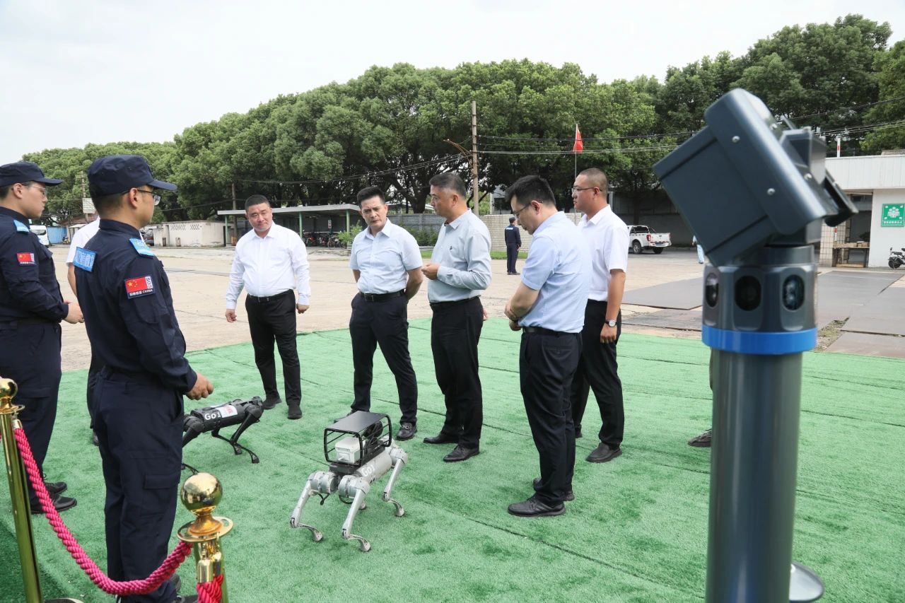 ? ? ? ?9月23日,上海市應(yīng)急管理局黨委委員、副局長楊曉東領(lǐng)導(dǎo)一行抵達(dá)海江集團(tuán)上海應(yīng)急救援基地,首先參觀調(diào)研基地智能裝備設(shè)置狀況。參觀過程中,基地應(yīng)急救援隊(duì)隊(duì)員分別向領(lǐng)導(dǎo)進(jìn)行了四足機(jī)器人、消防坦克、5G機(jī)械等操作演示。