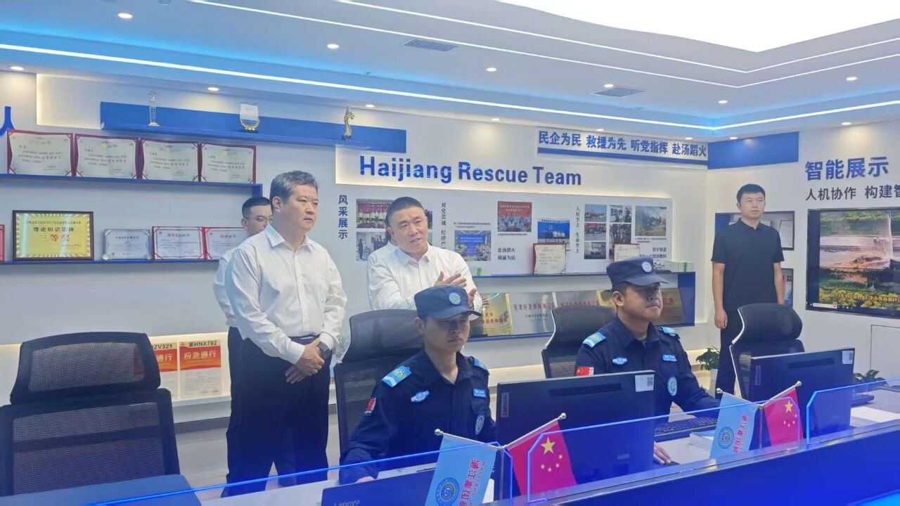 考察期間,高廣明書記一行先后參觀集團5G智能指揮中心與企業文化展廳,深入了解海江集團在信息化平臺搭建、智能化安防系統以及專業應急救援隊伍建設方面的實踐經驗與創新成果。