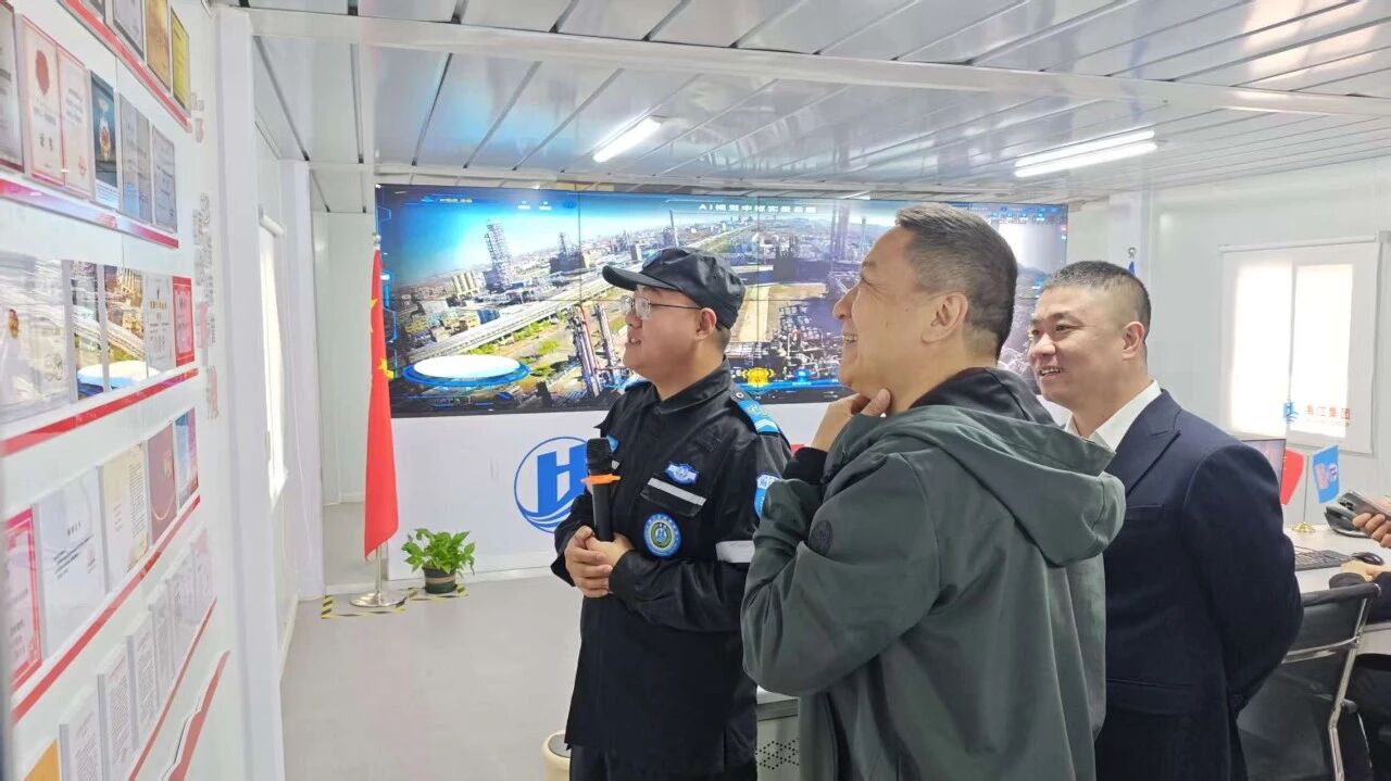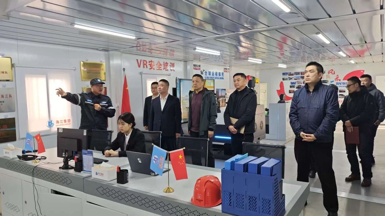 ? ? ? 王德強副局長一行實地考察海江集團上海應急救援基地,詳細了解了基地裝備庫建設情況及5G智能指揮中心的運行成效,并就進一步提升應急救援能力建設進行深入交流。