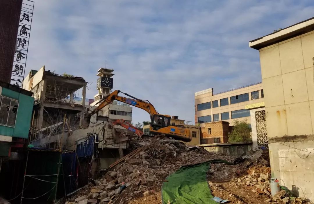 ? ? 8月11日下午5時,渤海大廈南側樓順利完成拆除作業。此次作業,樓與樓之間間隙小,施工作業面窄、作業難度大,海江集團經多方論證,采用最新智能液壓剪配合新工藝載荷式移位定向放倒,順利解決了所面臨的難題。