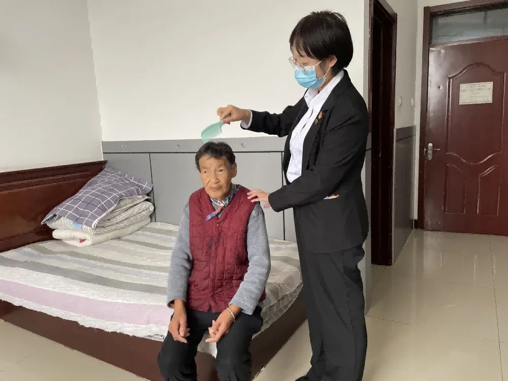志愿者們耐心傾聽老人們的心聲,看到老人的頭發亂了,貼心的拿起梳子,為老人們梳理起了銀絲,小小舉動深深觸動著老人的心。